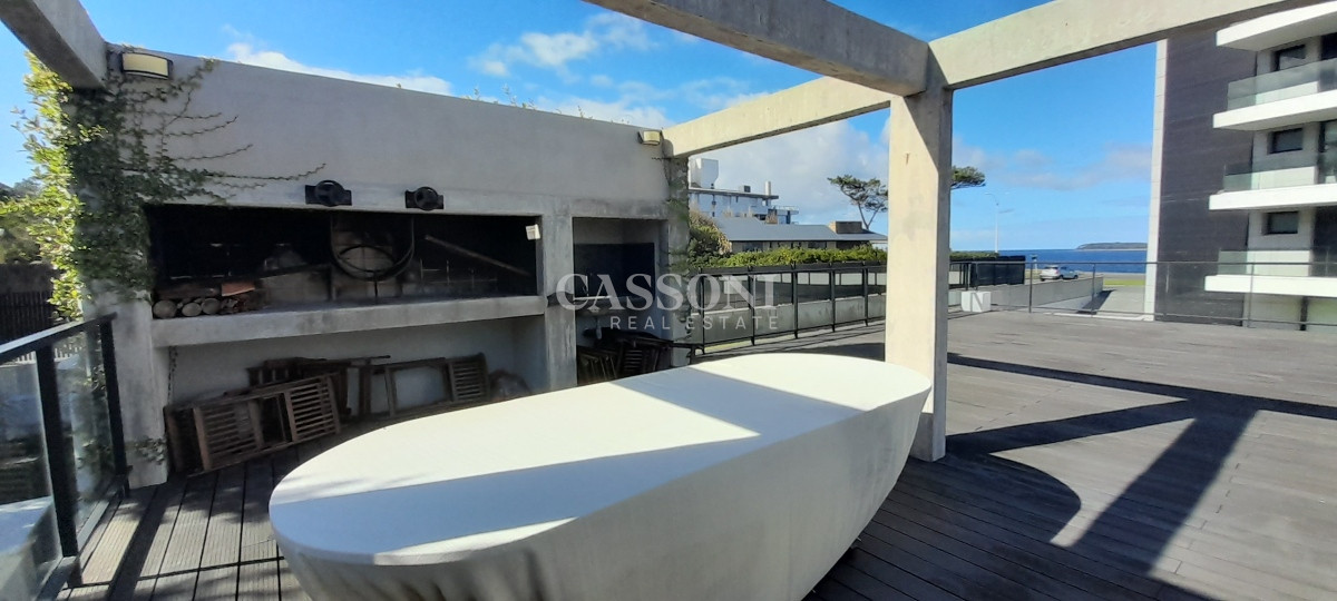Edificio moderno en primera fila al mar en Playa Mansa.