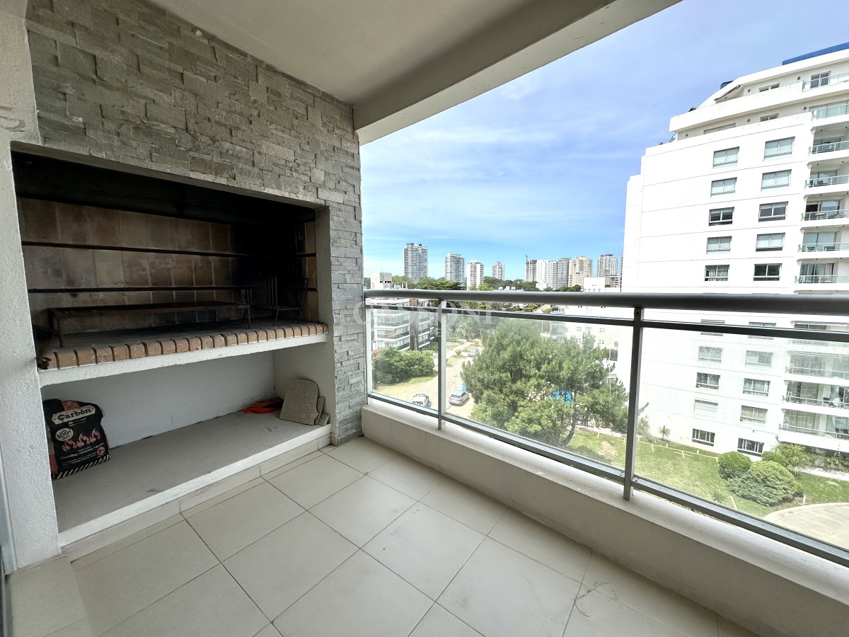 3 dormitorios y 2 baños, principal en suite con salida al balcón y baño compartimentado, 2 dormitorios con vista hacia la piscina del edificio.